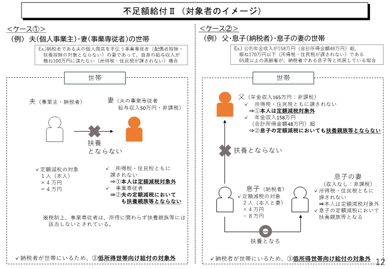 不足額給付は、令和6年度に実施した定額減税補足給付金(当初調整給付)について、令和5年所得等を基に推計した額(令和6年分推計所得税額)を用いて算定したことなどにより、令和6年分所得税及び定額減税の実績額等が確定したのち、本来給付すべき額と当初調整給付との間に不足が生じる方等を対象に、給付するものです。
