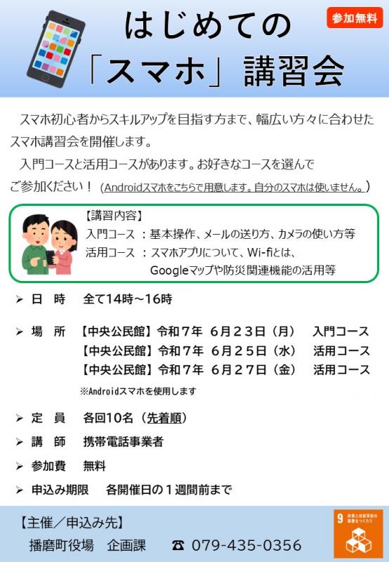 ホーム > 町政情報 > 施策・計画 > デジタル推進(DX) > はじめてのスマホ講習会(令和7年度上半期分)