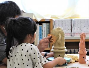 郷土資料館で大人気の「埴輪(はにわ)づくり」教室です。