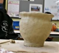 大中遺跡から出土した弥生土器を展示室で見学し、古代人の気持ちになって作りました。