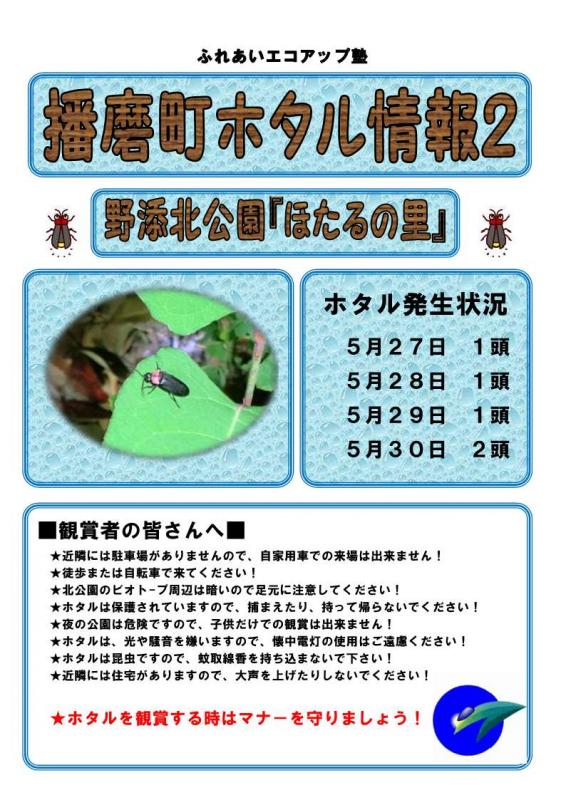 ホーム > 暮らし > まちづくり > 環境政策 > 環境学習 > 野添北公園ホタル情報 > 過去の野添北公園ホタル情報 > 平成29年度ホタル情報
