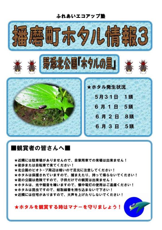ホーム > 暮らし > まちづくり > 環境政策 > 環境学習 > 野添北公園ホタル情報 > 過去の野添北公園ホタル情報 > 平成30年度ホタル情報